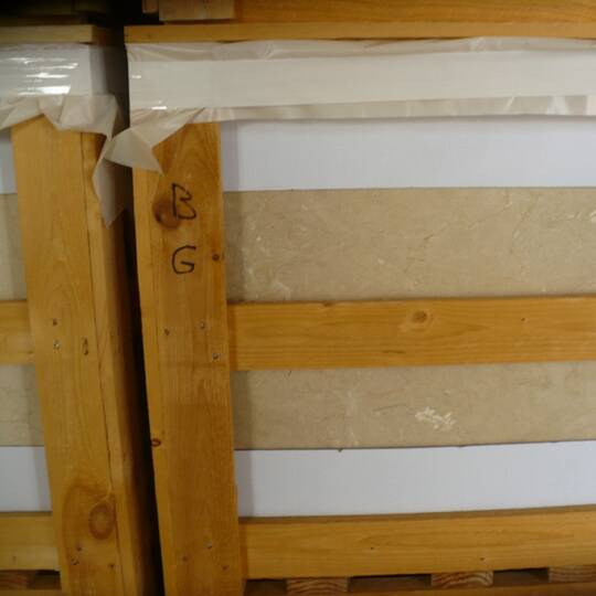 Back reinforced with resin and sand. Packed in cardboard boxes into export wooden crates. Constant production.